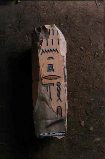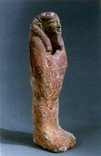 It was discovered in two pieces lying a few centimetres from each other. The style of this shabty is identical to that of the royal shabtys of the XXVth dynasty discovered in the necropolis of Nuri. However it also resembles the funerary statuettes of Petamenofi, the owner of the TT 33, which is located a few dozens of meters from Harwa's tomb. The fact that all the shabtys found in Harwa's tomb have been discovered in the way leading out (except one coming from the subsidiary room S1) and at a certain height above the ground level, would support the hypothesis already expressed by J.J. ClŠre (BIFAO 34, 1934). According to him, the shabtys of Harwa were not taken from his tomb before Coptic times. At the same time, two fragments reached Medamud where they were found in the sacred lake of the temple. We also carried out